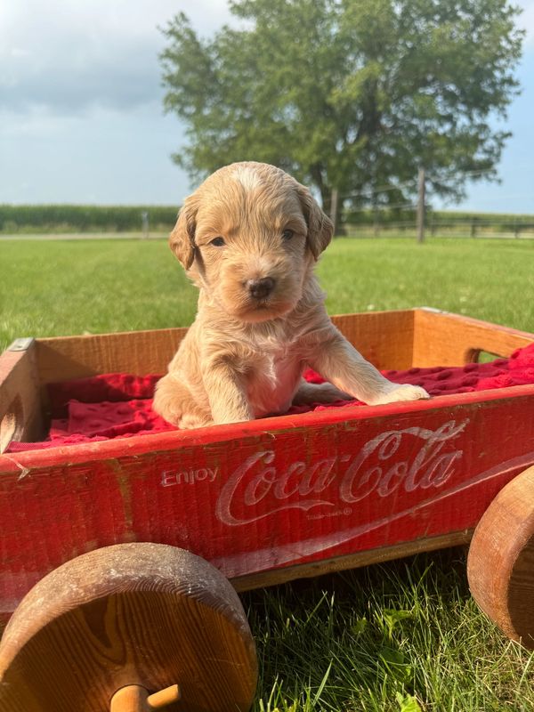 Lucy is another sweet standard size mini golden doodle. She is very energetic and loves to go for nice long walks. While she is energetic she loves to relax in the nice air conditioning after those long walks. She will come right up and wait for a pet behind the ears! Lucy was born July 16th, 2022.